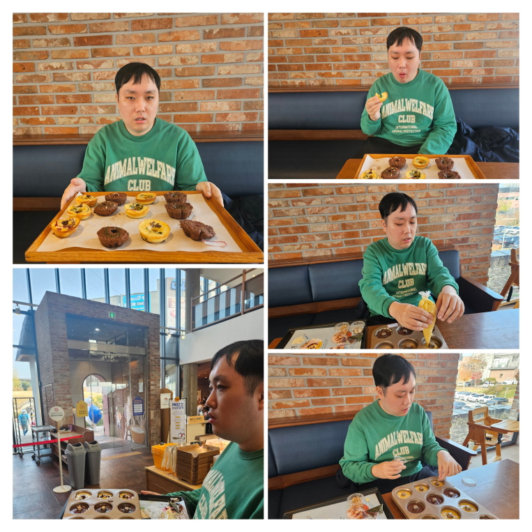 평소 좋아하던 도너츠 만들기 체험에 참여해 직접 반죽을 만지고, 모양을 빚어내며 “내가 만든 도너츠”라는 뿌듯함을 가득 담았고, 갓 튀겨진 도너츠의 향기는 어느새 한*렬 이용인의 얼굴에 미소를 피워냈습니다.